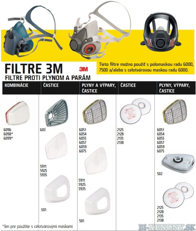Filtre proti časticiam série 5000 sa môžu používat samostatne len spolu s držiakom 603 a 501.