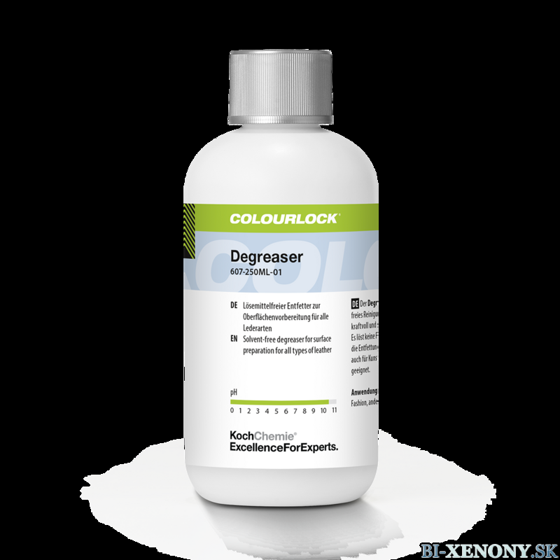 COLOURLOCK Degreaser je vysoko účinný čistiaci a odmasťovací prípravok bez obsahu rozpúšťadiel. Je navrhnutý tak, aby dôkladne odstránil mastnotu, pot a zvyšky predchádzajúcich ošetrení bez toho, aby poškodil povrchovú farbu kože.