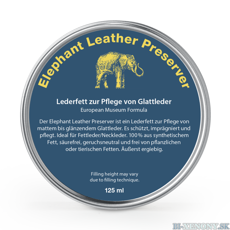 Doprajte svojej koži v aute alebo na nábytku starostlivosť, ktorú používajú múzeá a reštaurátori po celom svete. Elephant Leather Preserver je špičkový, bezkyselinový balzam na báze syntetického vosku, ktorý je navrhnutý pre maximálnu ochranu, zmäkčenie a konzerváciu hladkých koží.