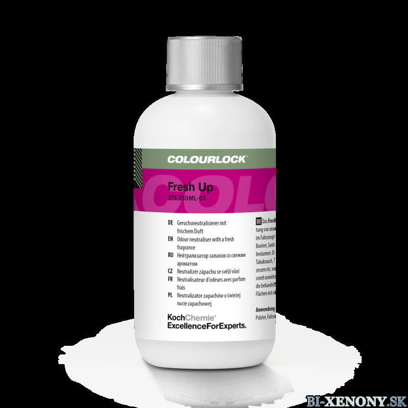 COLOURLOCK Fresh Up je vysoko účinný prípravok určený na definitívne odstránenie nepríjemných pachov v interiéroch vozidiel, karavanoch, lodiach, sanitárnych zariadeniach, ako aj v obytných a komerčných priestoroch.