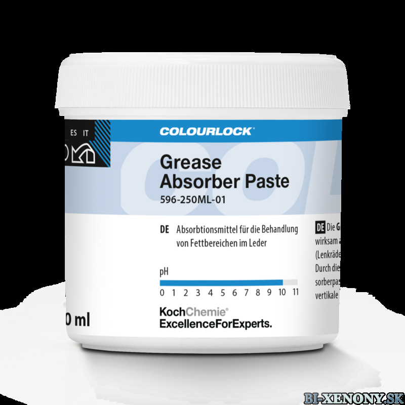 COLOURLOCK Grease Absorber Paste je vysoko účinná absorpčná pasta navrhnutá na hĺbkové vyťahovanie mastnoty z kože. Je nevyhnutným pomocníkom pri renovácii miest, ktoré sú v intenzívnom kontakte s pokožkou a vlasmi, kde bežné čistiace prostriedky zlyhávajú. Vďaka svojej pastovitej konzistencii nesteká a je ideálna aj na aplikáciu na zvislé plochy.