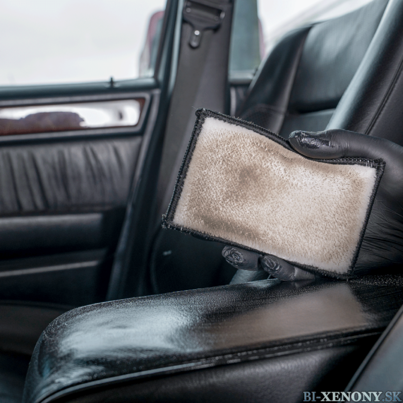 Kožu čistite systematicky „od švu k švu“ krúživými pohybmi.