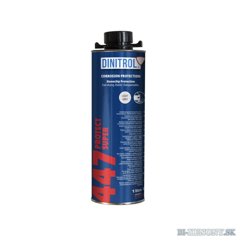 Nereaguje s povrchmi z PVC, je bez azbestu a bitúmenu, zostáva trvalo elastický a je odolný voči úderu kameňa a posypovej soli. Po dôkladnom vyschnutí môže byť DINITROL 447 Protect Super prelakovaný všetkými komerčne dostupnými lakmi.