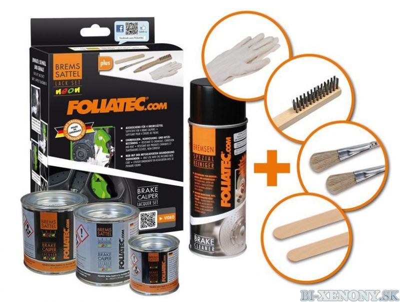 Profesionálna Racing-style sada na farbenie brzd FOLIATEC. Vaším brzdám a autu dodá nový a športový vzhľad. Táto farba na brzdiče je trojzložková a tým pádom je vysokoodolná oproti bežným sprejom. Balenie obsahuje aj sprej ``Čistič brzd a strmeňov`` s ktorým perfektne očistíte a odmastníte brzdy pred aplikáciou ,ale aj neskôr.