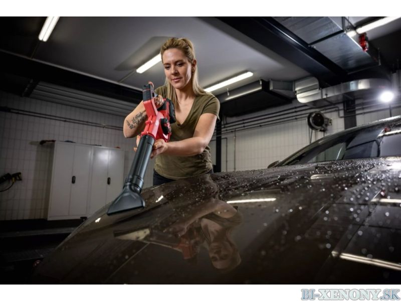 Dodávaný s plochou hubicou na odstránenie zvyškov vody z kapoty, strechy, okien atď. Trysku je možné otočiť o 360 ° pre horizontálne aj vertikálne použitie, takže super na kapotu a následne na bok dverí. Ďalej dodávaný so zúženou hubicou na vyfukovanie zo škár alebo z kolies.