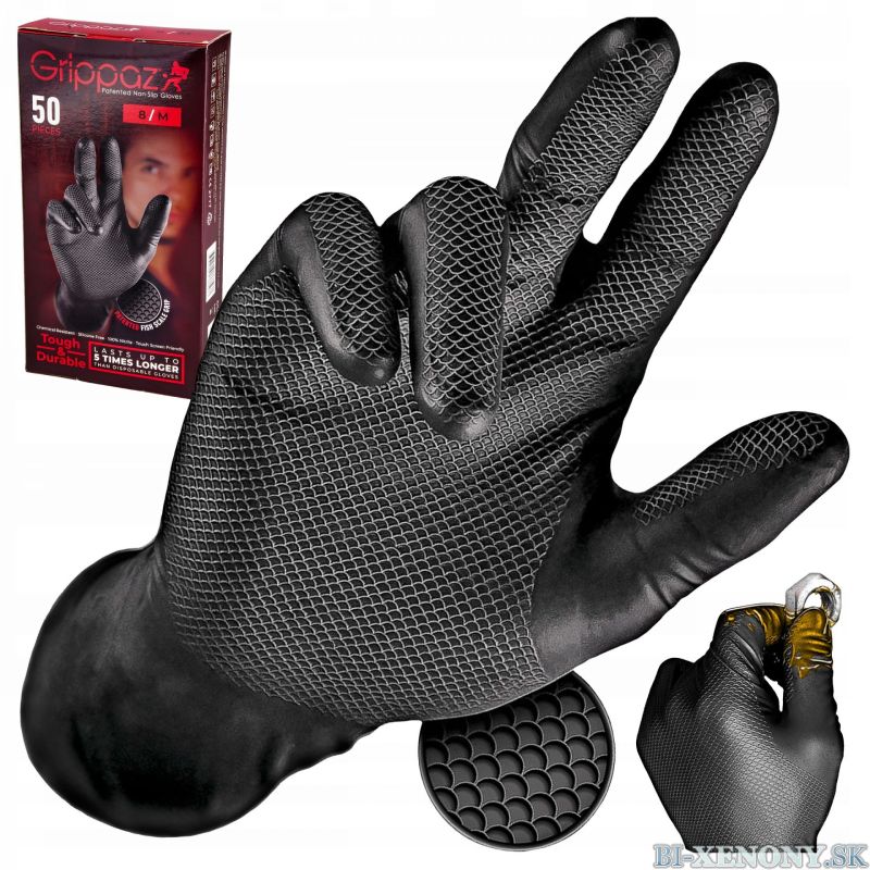 Bi-Xenony.sk > Auto doplnky > Autokozmetika > Kefy, Špongie, Utierky, Rukavice > Grippaz 246A Protišmykové nitrilové rukavice čierne veľkosť L/9 - 50ks