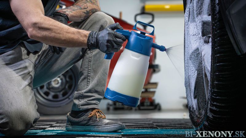 Auto-detailing: Aplikácia aktívnej peny a čistenie diskov.