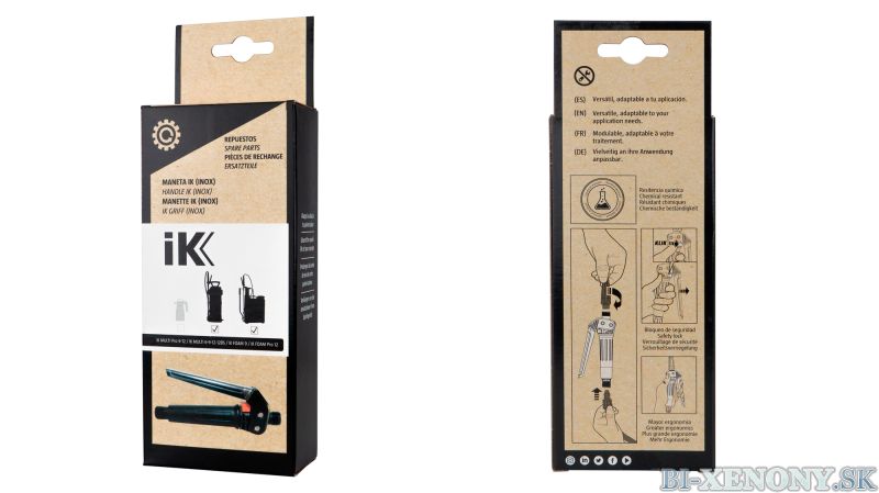 Univerzálna náhradná rukoväť IK Handle (INOX) je vyrobená z vysoko kvalitnej nerezovej ocele, čo zaručuje vynikajúcu odolnosť voči korózii a dlhú životnosť aj v náročných podmienkach. Táto rukoväť je kompatibilná s vybranými modelmi postrekovačov a napeňovačov IK Sprayers, čím zabezpečuje spoľahlivú a pohodlnú manipuláciu pri rôznych aplikáciách.