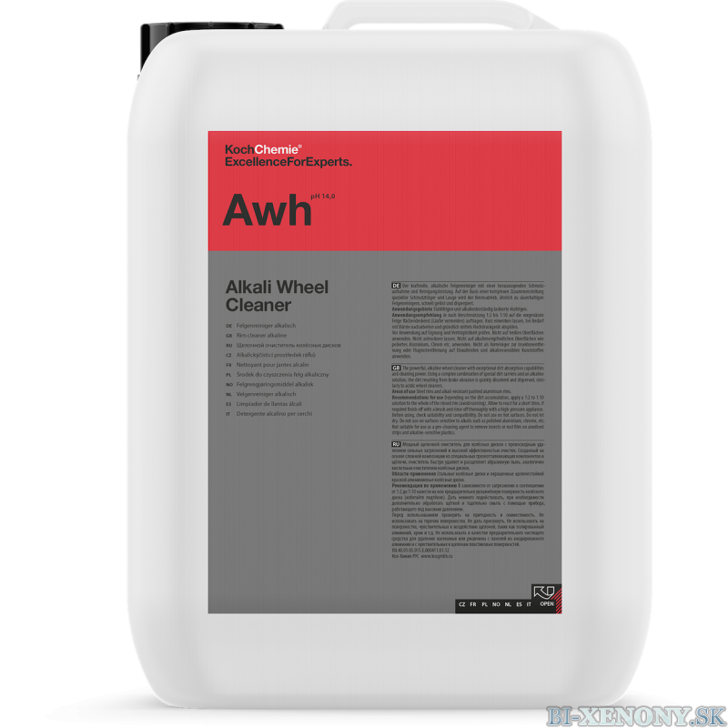 Koch Chemie Alkali Wheel Cleaner (Awh) predstavuje špičkové riešenie v oblasti bezkyselinového čistenia kolies. Tento vysoko koncentrovaný, alkalický prípravok bol vyvinutý špeciálne pre náročné podmienky profesionálnych autoumyvární a detailingových štúdií, kde sa vyžaduje rýchlosť, efektivita a bezpečnosť.