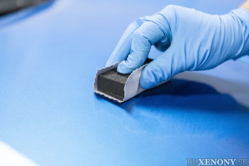 Aplikujte produkt na vopred pripravený (odmastený) lak krížovými pohybmi.
