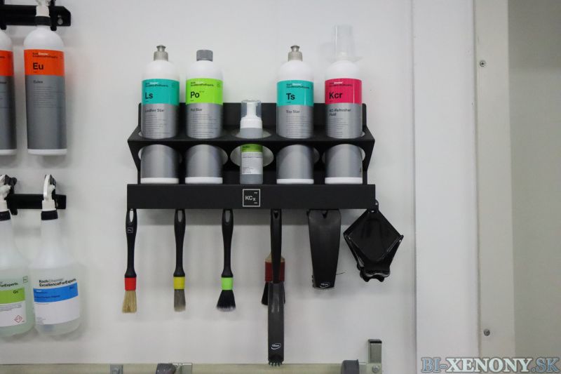 - Detailingový držiak na fľaštičky a štetce poskytuje miesto na 5 fliaš až do priemeru 9 cm.