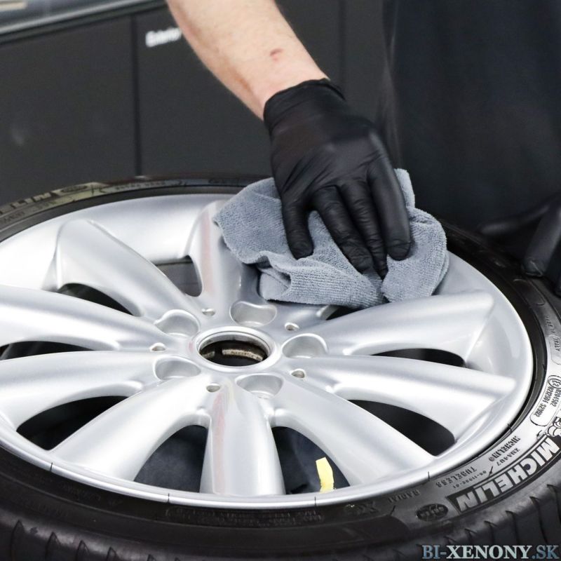 - Pred procesom aplikácie dôkladne vyčistite disk prípravkom Magic Wheel Cleaner. Na hrubé nečistoty, ako je prach z bŕzd, použite vhodné príslušenstvo, ako je kefa na kolesá).