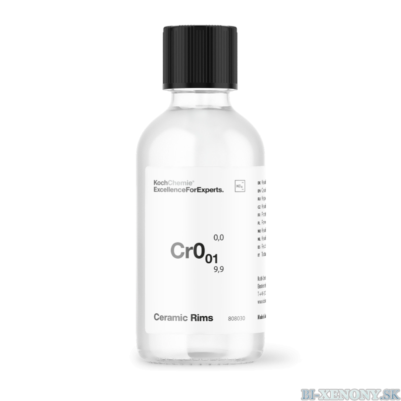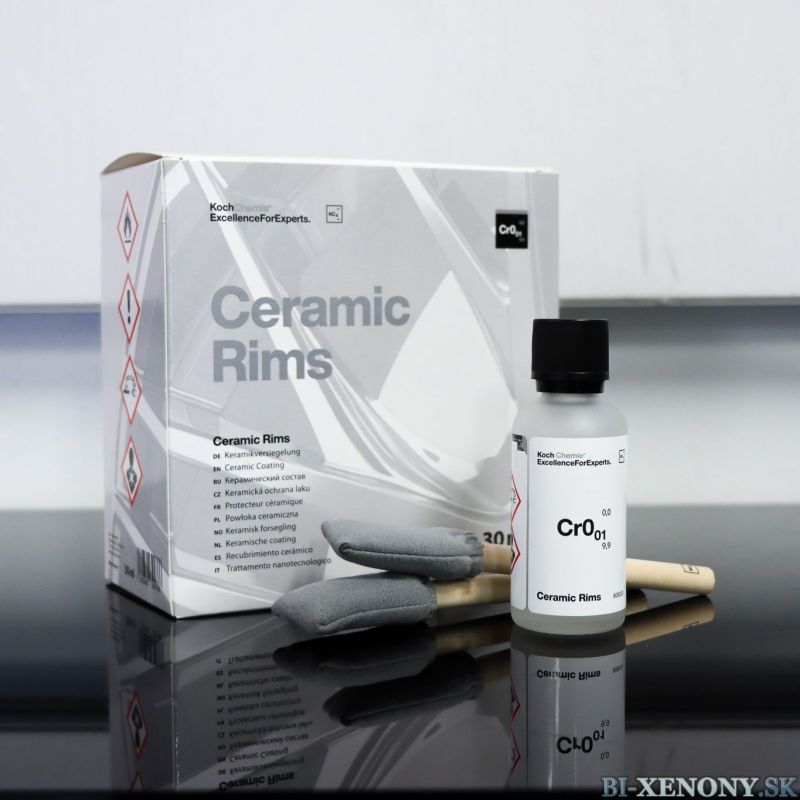 Koch Chemie Ceramic Rims Cr0.01 je keramická ochrana, ktorá poskytuje dlhodobú ochranu lakovaným diskom. Povlak kolesa trvalo priľne k povrchu chemickou reakciou a vytvára veľmi dobré vodoodpudivé správanie (lotosový efekt). Ošetrený povrch možno vďaka jeho vlastnostiam, ktoré sa ľahko čistí, jemne a jednoducho čistiť aj ručne. Aj po použití kyslých a alkalických čistiacich prostriedkov zostáva ochranná vrstva neporušená.