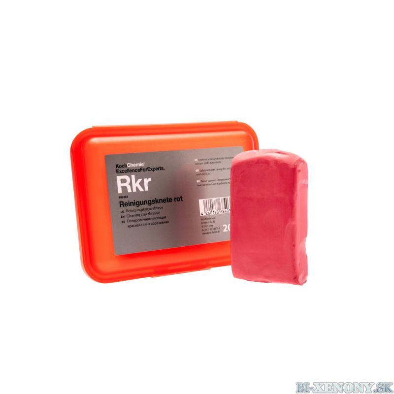 Koch-Chemie Reinigungsknete rot (Rkr) je vysoko účinná, tvrdá čistiaca plastelína vyvinutá špeciálne pre situácie, kde bežné čistiace hliny zlyhávajú. Tento produkt predstavuje „ťažkú váhu“ v mechanickej dekontaminácii a je určený na riešenie najvážnejších kontaminácií laku, skla a odolných exteriérových povrchov.
