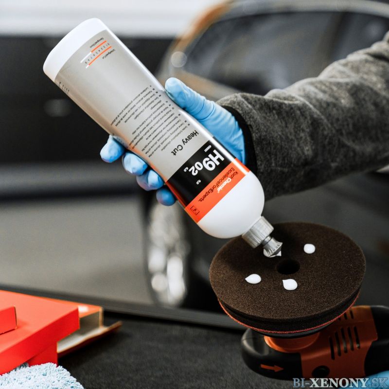 Inovatívna brúsna leštiaca pasta pre rýchle spracovanie silne zvetraných lakov; odstraňovanie hlbokých škrabancov a efektívne odstraňovanie lakovacej hmly až do zrnitosti 1 200. Vďaka extrémne homogénnemu brúsnemu zrnuvytvára Heavy Cut 9.02 mimoriadne vysoký výbrus Stupen 9 pri veľmi dobrom stupni lesku stupeň 6. Hodí sa výborne pre všetky druhy lakov (ako mäkké; tak i odolné proti poškriabaniu)