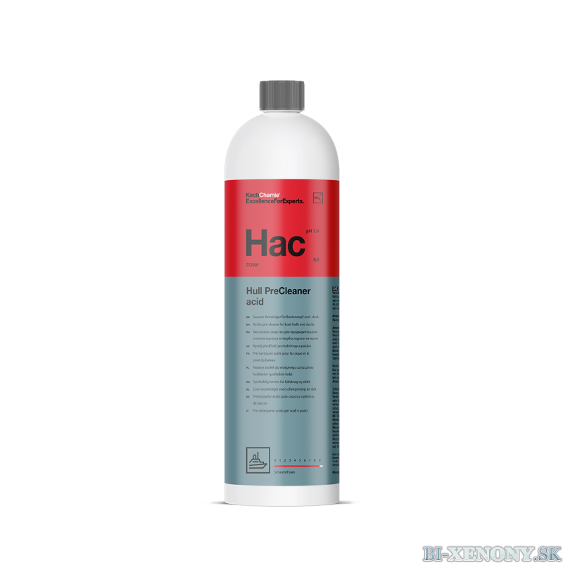 Koch Chemie Hull Precleaner Acid je špeciálne vyvinutý silný kyslý predumývač z profesionálnej línie Koch Chemie Marine Line, určený na dôkladné čistenie a dekontamináciu trupu lodí a iných plavidiel. Tento vysoko účinný prípravok je navrhnutý na boj proti najodolnejším minerálnym usadeninám a zažltnutiu, ktoré sa bežne vyskytujú v morskom a sladkovodnom prostredí.