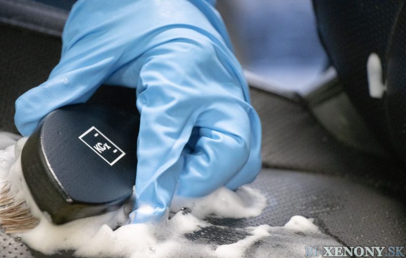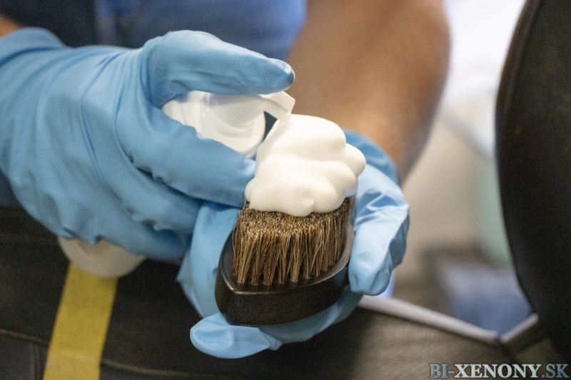 Aplikujte vhodný čistiaci prípravok na kožu (napr. Koch Chemie Pol Star ) priamo na kefu pomocou napeňovača alebo na čistený povrch.