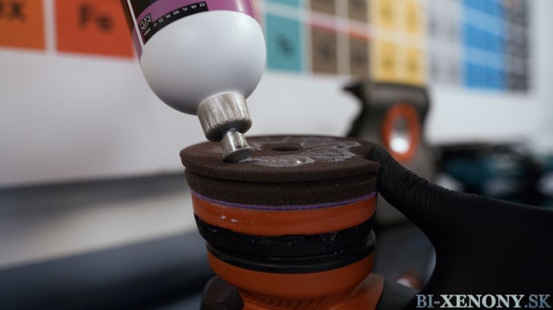 Za účelom vytvorenia optimálnych výsledkov odporúčame pri leštení používať náš Micro Cut Pad a excentrickou brúsku s nútenou rotáciou (napr. Makita PO5000C; najvyšší počet otáčok). Prípadne môžete použiť na opracovanie povrchov rotačnú leštičku v kombinácii s našim Micro Cut Pad . Pastu rovnomerne rozotrite pri vypnutom stroji na opracovaný povrch a následne vyleštite miernym tlakom do kríža; kým sa nevytvorí transparentný film; to znamená; kým sa kompletne nerozpadne oxid hlinitý obsiahnutý v paste. Pady používané na tento výrobok nepoužívajte s inými produktmi. Na odstránenie zvyškov pasty bez škrabancov a rýh odporúčame našu profesionálnu utierku z mikrovlákna rezanú ultrazvukom.