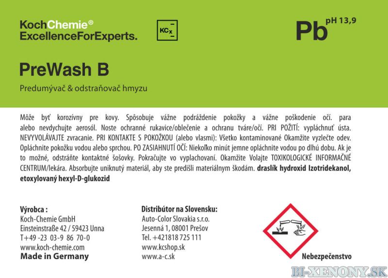 > Koch Chemie produktová etiketa - Prewash B - Predumývač; odstraňovač hmyzu
