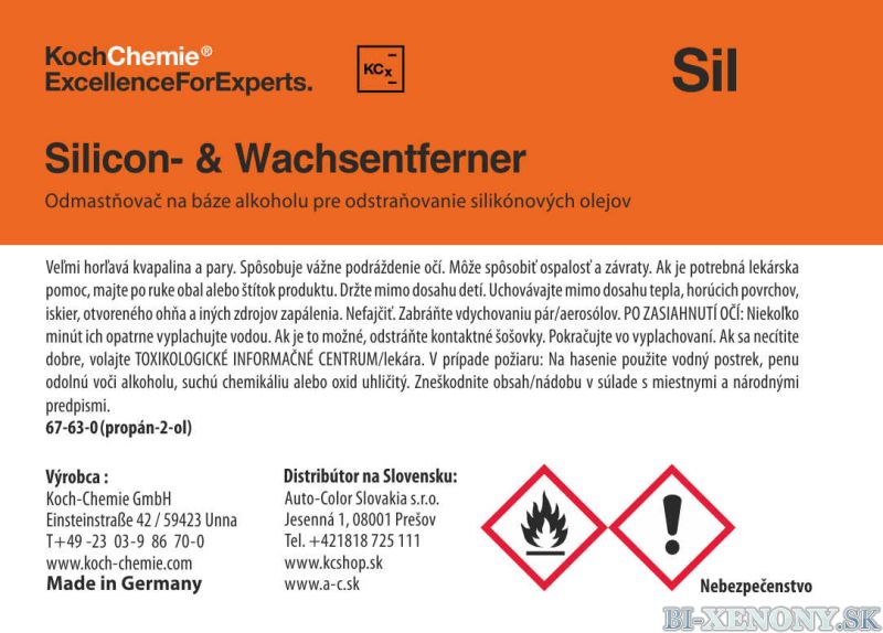 > Koch Chemie produktová etiketa - Silicon&Wachsentferner - Odmastňovač;odstraňovač vosku