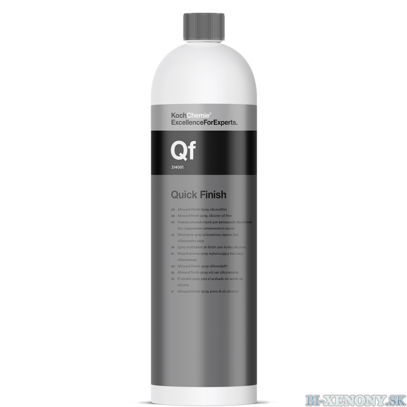 QUICK FINISH bez obsahu silikónu je multifunkčný detailer na čistenie všetkých lakovaných povrchov; umelých hmôt; kokpitov; displejov; sklenených vysoko lesklých plôch; klavírových lakov. Tiež vhodný na drevený a ušľachtilý interiér vozidla. Čistí; udržuje; chráni a konzervuje v jednom pracovnom procese. Ošetrené povrchy získajú vysoký lesk a hladkosť bez šmúh. Odtlačky prstov a ľahké znečistenie budú rýchlo a jednoducho odstránené. Prípadné predchádzajúce nanesené vosky a udržiavacie prípravky nebudú odstránené. Prípravok je ideálny na prezentáciu vozidiel na výstavách (vo výstavných miestnostiach) vďaka svojmu rýchlemu a jednoduchému použitiu. Oblasť použitia: Autolaky; displeje; klavírový lak; kokpity; lakované drevo; sklo; plastové diely; povrchy z ušľachtilej ocele atď. Návod na použitie: