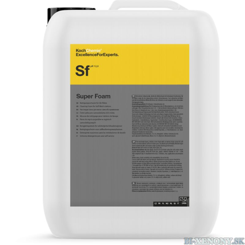 Extrémne peniaci alkalická aktívna pena s intenzívnym ovocnou arómou pre samoobslužne umývacie linky rovnako ako pre použitie pomocou penového dela(napeňovača). Super Foam vytvára nedostihnuteľný penový výsledok na vozidle a aromatizuje umývacie miesto trvalo svojou vôňou. Jeho alkalická pH hodnota a vysoko efektívne látky uvoľňujú nečistoty a zaručujú vynikajúci čistiaci výkon. Pena uzavrie nečistotu a je možné ich ľahko opláchnuť; takže možno vozidlo pomocou vysokého tlaku vyčistiť šetrne laku.