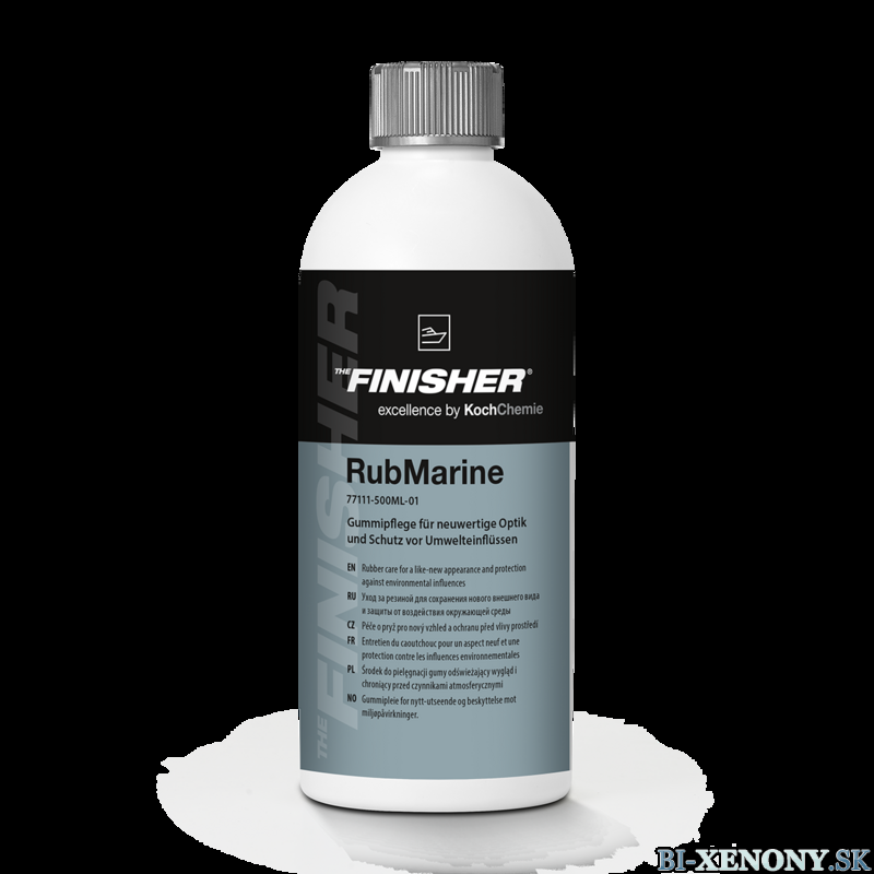 Koch Chemie The Finisher RubMarine je špičkový prípravok na ošetrenie a ochranu gumových a plastových povrchov. Bol vyvinutý pre náročné použitie v exteriéri a v marine prostredí, kde sú materiály vystavené UV žiareniu, vlhkosti, soli a poveternostným vplyvom.