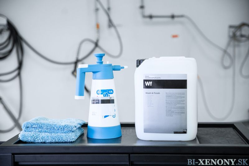 Špeciálny produkt Wash & Finish na rýchle a jednoduché umývanie vonkajších častí mierne až stredne silne znečistených vozidiel bez vody. Čistí; ošetruje a konzervuje lak; sklo; plastové diely; ráfiky atď. v jednej jedinej pracovnej operácii. Vďaka inovovaným čistiacim a ošetrujúcim komponentom čistí povrchy šetrne a dodáva im vodoodpudivý finálny lesk bez šmúh. Už nanesené politúry a vosky zostávajú zachované. Oblasť použitia: Osobné automobily; motocykle; kempingové a úžitkové vozidlá atď. Návod na použitie : Pomocou rozprašovača naneste rovnomerne na čistené plochy; nečistoty zotrite mikrovláknovou handričkou a druhou mikrovláknovou handričkou vyleštite. V prípade silného znečistenia postup opakujte. Upozornenie : Pred použitím skontrolujte vhodnosť a znášanlivosť.