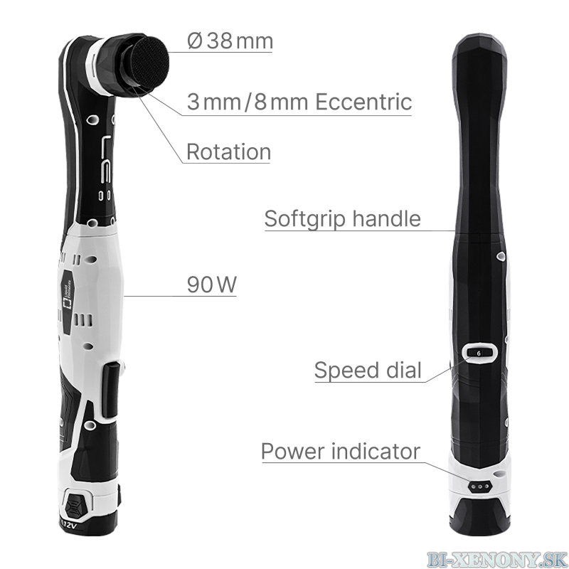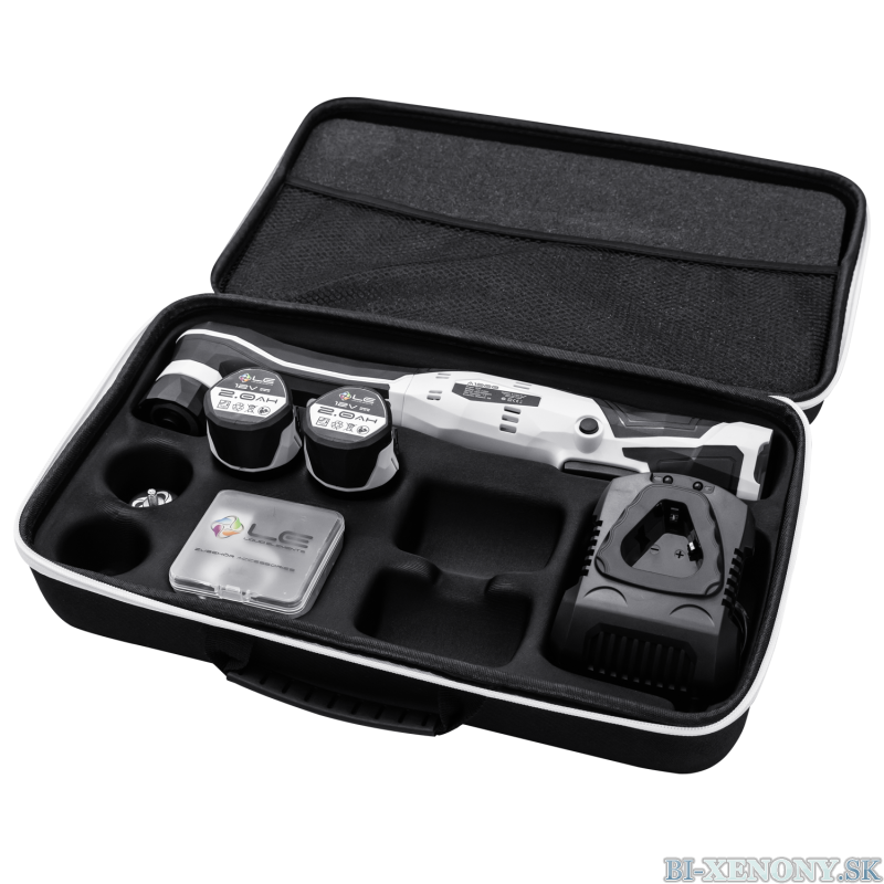 Zabudnite na zamotané káble, ktoré by mohli poškriabať čerstvo vyleštený lak. V balení nájdete dva 12V akumulátory. Kým jeden používate, druhý sa nabíja v priloženej rýchlonabíjačke. Pri bežnom zaťažení je čas prevádzky takmer identický s časom nabíjania, čo umožňuje nepretržitú prácu.