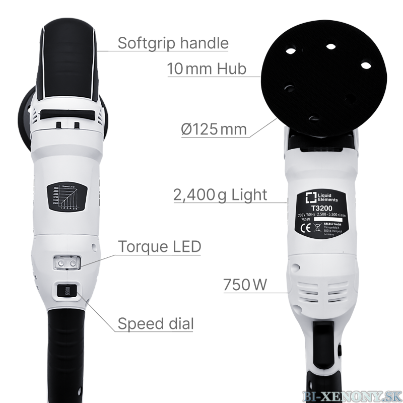 Liquid Elements T3200 predstavuje novú generáciu leštičiek, ktorá vypĺňa medzeru medzi základnými hobby strojmi a profesionálnym náradím. S prepracovaným dizajnom, vylepšenou ergonómiou a predovšetkým 10mm excentrickým kmitom je tento stroj ideálnou voľbou pre každého, kto hľadá maximálnu efektivitu pri zachovaní bezpečnosti orbitálneho pohybu.