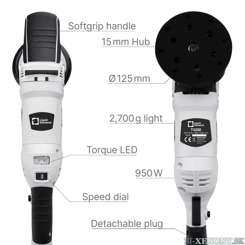 Liquid Elements T4200 predstavuje novú generáciu profesionálnych excentrických leštičiek, ktorá posúva hranice detailingu. Tento model je navrhnutý pre tých, ktorí hľadajú maximálny výkon, precíznosť a rýchlosť pri korekcii laku, no zároveň vyžadujú bezpečnosť, ktorú ponúka orbitálny pohyb.