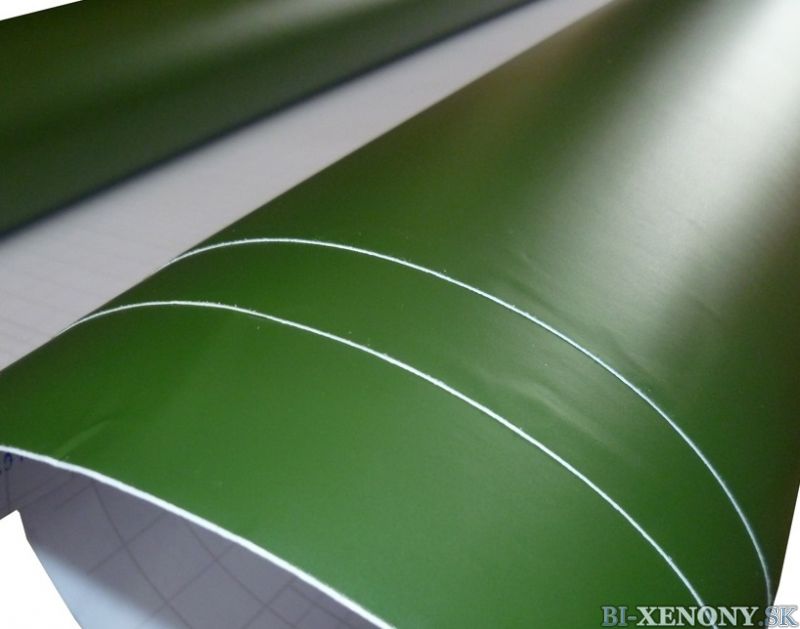 Vojenská zelená matná fólia určená na auto, interiér aj exteriér. Rozmer fólie je 100cm x 152cm. Táto fólia patrí medzi najkvalitnejšie na trhu. Je samolepiaca, ľahko tvarovateľná, vhodná aj na rôzne tvarované povrchy.