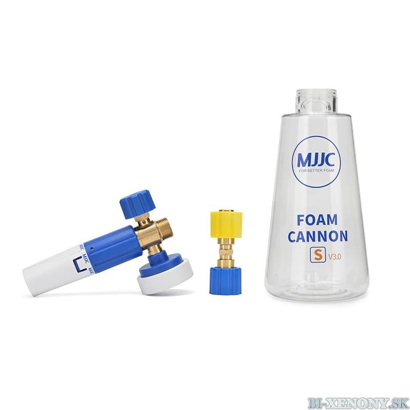 MJJC Foam Cannon S V3.0 mení spôsob umývania áut a je nevyhnutné pre bezpečné umývanie! Tento napeňovač funguje podľa Venturiho efektu, kde sa čistiaci prostriedok nasáva z 1-litrovej fľaše. V kombinácii s dobrou aktívnou penou ľahko vytvoríte hrubú vrstvu peny, ktorá pôsobí na povrchu po dlhú dobu.