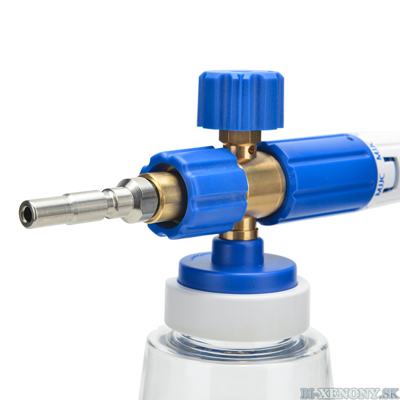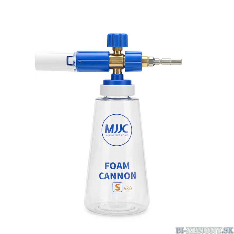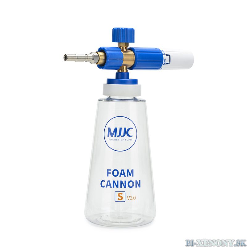 MJJC Foam Cannon S V3.0 mení spôsob umývania áut a je nevyhnutné pre bezpečné umývanie! Tento napeňovač funguje podľa Venturiho efektu, kde sa čistiaci prostriedok nasáva z 1-litrovej fľaše. V kombinácii s dobrou aktívnou penou ľahko vytvoríte hrubú vrstvu peny, ktorá pôsobí na povrchu po dlhú dobu.