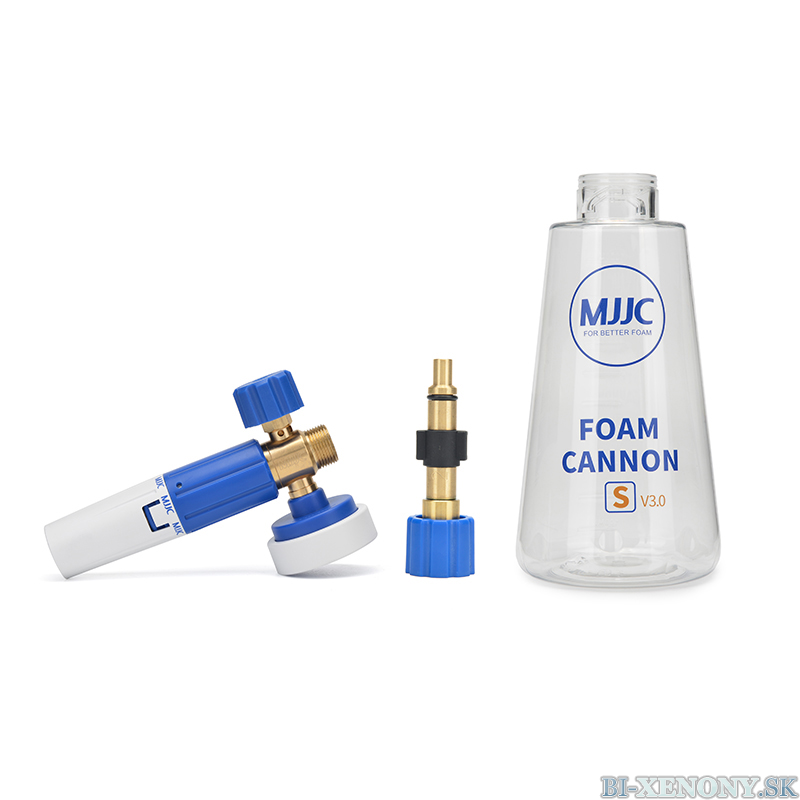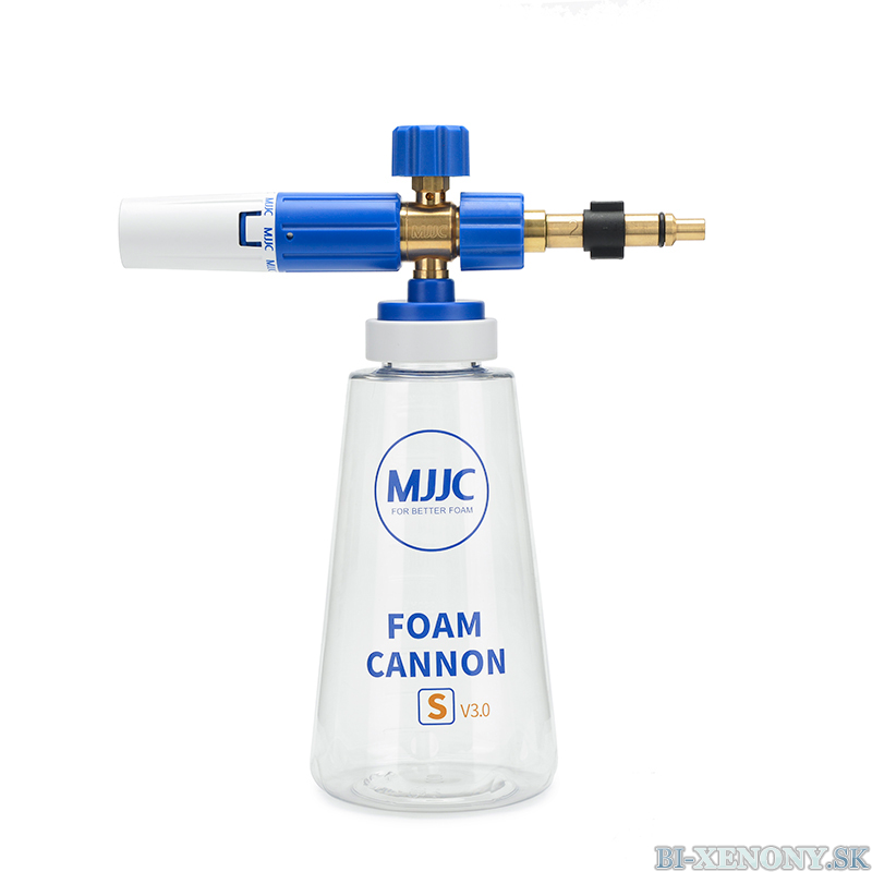 MJJC Foam Cannon S V3.0  mení spôsob umývania áut a je nevyhnutné pre bezpečné umývanie! Tento napeňovač funguje podľa Venturiho efektu, kde sa čistiaci prostriedok nasáva z 1-litrovej fľaše. V kombinácii s dobrou aktívnou penou ľahko vytvoríte hrubú vrstvu peny, ktorá pôsobí na povrchu po dlhú dobu.