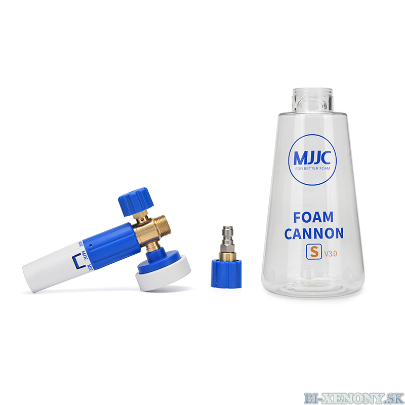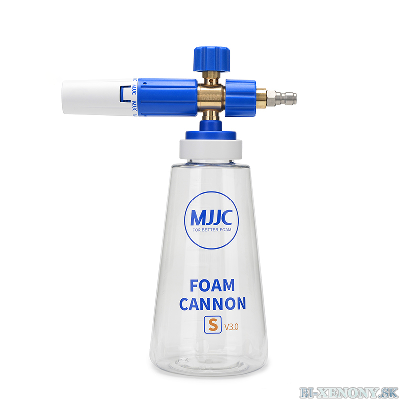 MJJC Foam Cannon S V3.0  mení spôsob umývania áut a je nevyhnutné pre bezpečné umývanie! Tento napeňovač funguje podľa Venturiho efektu, kde sa čistiaci prostriedok nasáva z 1-litrovej fľaše. V kombinácii s dobrou aktívnou penou ľahko vytvoríte hrubú vrstvu peny, ktorá pôsobí na povrchu po dlhú dobu.