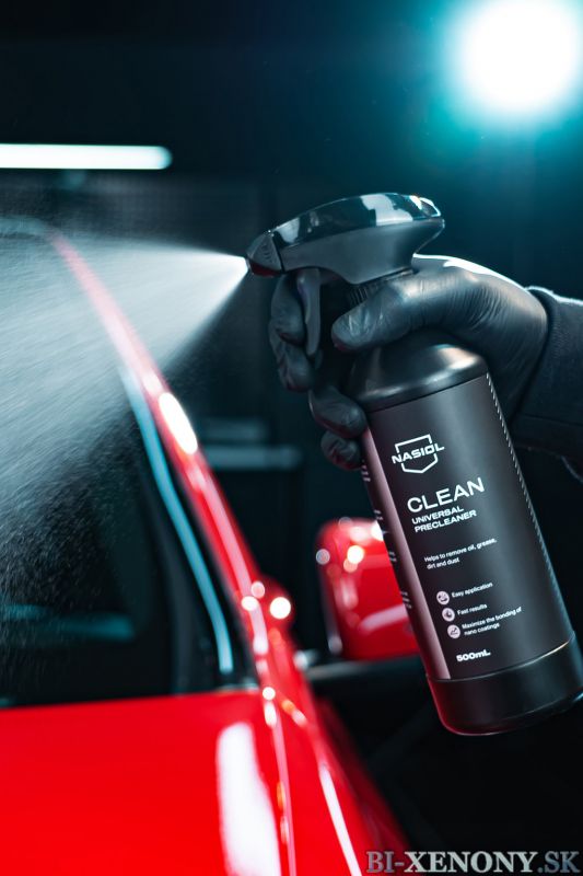 Nasiol CLEAN 500ml univerzálny čistič laku pomáha odstraňovať nečistoty pred aplikovaním nano keramickej ochrany. Odstraňuje nečistoty, prach, škvrny a zvyšky všetkých starých produktov.