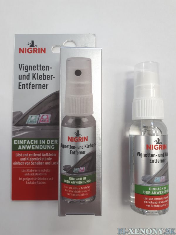 NIGRIN Odstraňovač nálepiek a lepidla, 30 ml, je účinný prostriedok na odstraňovanie nálepiek a zvyškov lepidla zo skiel a laku. Bez námahy rozpúšťa zvyšky lepidla a je vhodný pre všetky typy skiel a lakov.