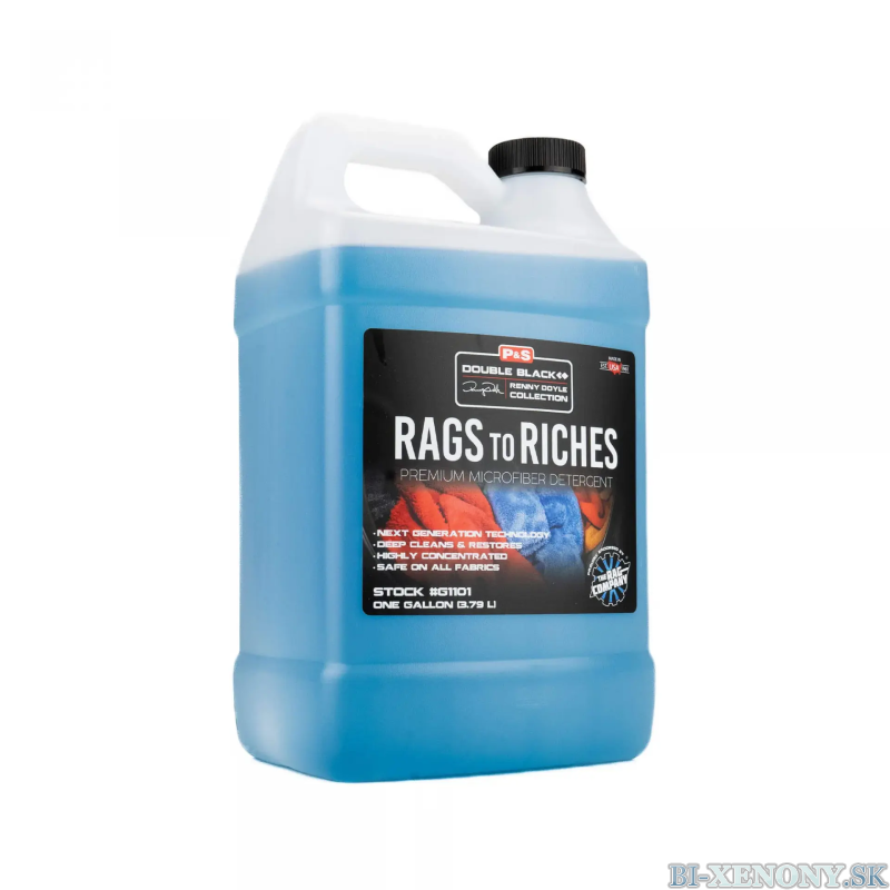 Čistiaci prostriedok z mikrovlákna P&S Rags To Riches je ďalšou generáciou čistiacich prostriedkov pre mikrovlákna; ktorá využíva nové objavy v čistiacej technológii. Pokročilé zloženie hĺbkovo čistí a obnovuje savosť a farbu utierok z mikrovlákna. Dokonca aj utierky používané s profesionálnymi čistiacimi a detailingovými produktmi; ako sú vosky alebo sealanty. P&S Rags To Riches je absolútne bezpečný pre všetky typy mikrovlákien a koncentrovaný na komerčné použitie.
